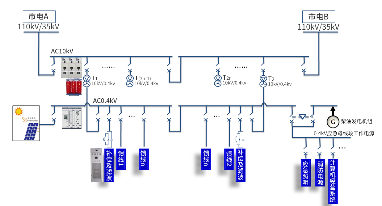 威勝電氣城市綜合體智能配電系統解決方案從整體出發,可為城市綜合體提供分布式能源接入與運維、中低壓配電、電能質量治理、綜合能效管理、用電安全與在線監測等綜合配用電服務。方案集成了中壓、變電、低壓的設備與服務,可為用戶提供一站式的智能配用電解決方案。
