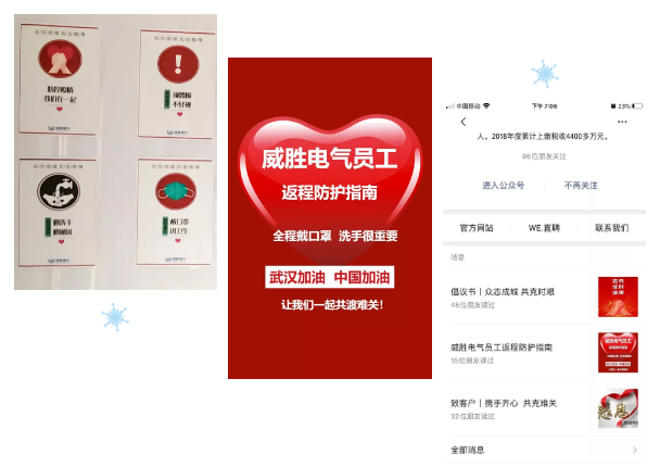 自疫情發生以來,威勝電氣成立以公司董事長為領導組組長的疫情防控小組, 健全決策高效、運轉協調的指揮體系,公司高層靠前指揮,對防控工作親自部署、督辦,多次組織召開線上防控疫情工作會議。并先后發布《關于進一步做好新型冠狀病毒感染的肺炎疫情防控工作的通知》等相關文件,對園區防疫和復工進行全面部署,對出入園管控、環境衛生、就餐管理、考勤辦公、宣傳引導等各項防控措施進行細化并責任到人。