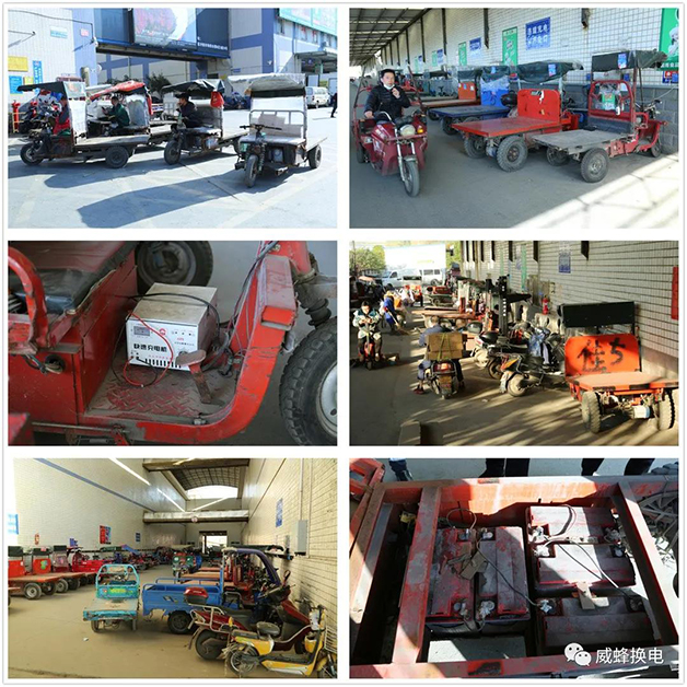 在我們現(xiàn)場(chǎng)改造的同時(shí),周邊的三輪師傅們也紛紛圍觀,據(jù)師傅們介紹,場(chǎng)內(nèi)傳統(tǒng)的充電樁需要繳納兩筆費(fèi)用,一筆是充電位年費(fèi)600元,一筆是實(shí)際充電電費(fèi),算起來(lái)一年在充電上面要花費(fèi)的錢逼近千元,伴隨而來(lái)的是巨大的時(shí)間成本。由于場(chǎng)內(nèi)電三輪充電區(qū)域緊湊,新老、品質(zhì)不一的電三輪充電安全隱患問(wèn)題也成為了他們心病。師傅們親眼看到換電改造如此快捷,了解到換電流程如此簡(jiǎn)單后,紛紛表示想嘗鮮咱們的換電新技術(shù)!