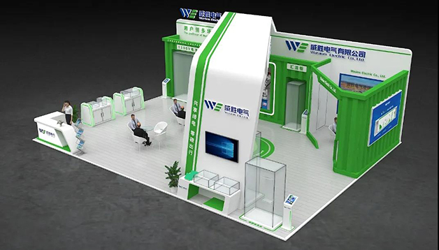 威勝電氣本次的參展主題是“用戶側多場景儲能應用”,擁抱綠能,助力雙碳生態發展,展位整體采用了綠色為主色調,主體設計引入集裝箱式儲能產品外觀元素;展品展示半嵌入式“集裝箱”,開放式展示集裝箱儲能的內部組成;展臺中央使用一個“能量柱”設計,表達了能源的數字屬性和智慧屬性。