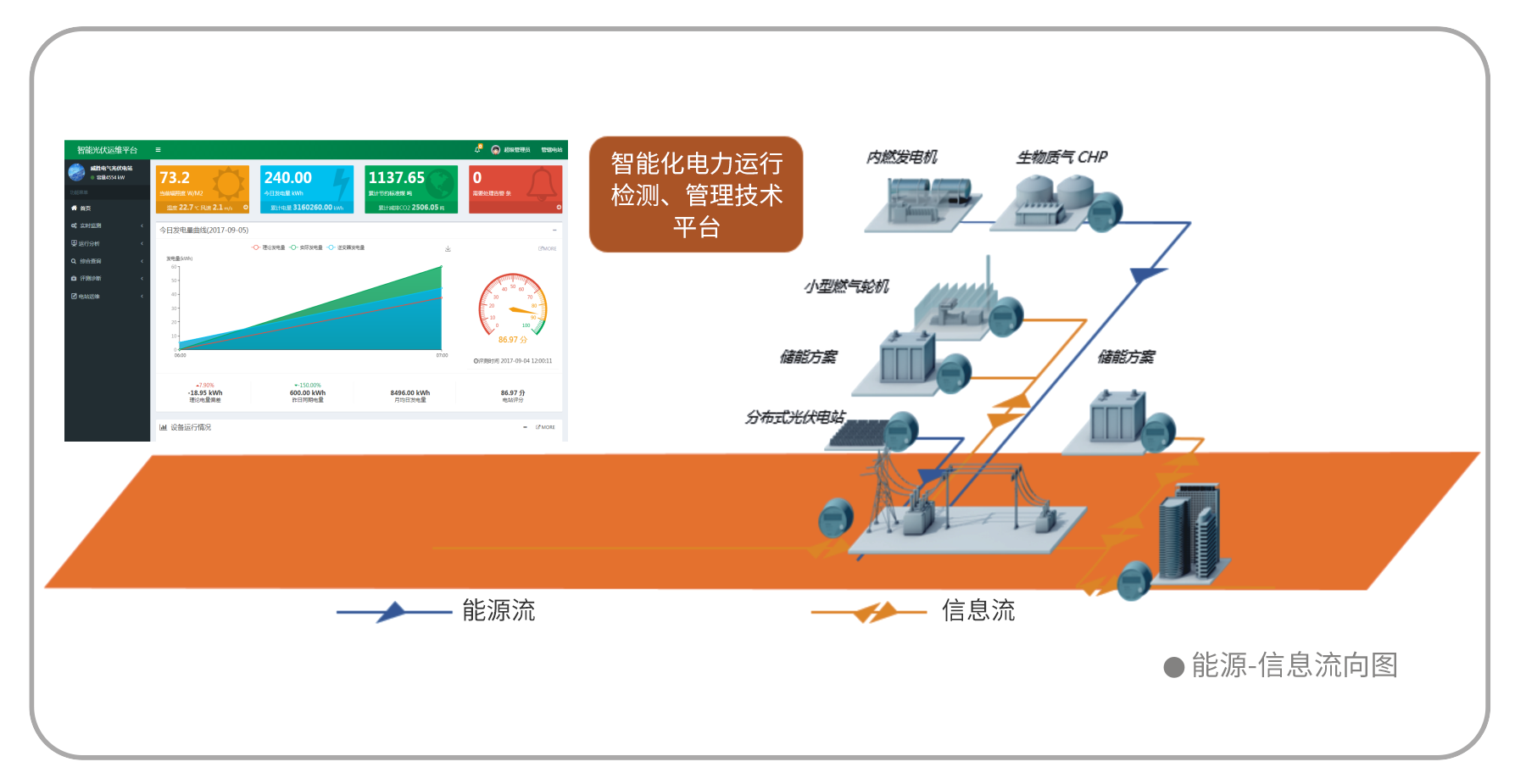 智能光伏電站管理系統立足于光伏發電運維市場,通過智能化的解決手段進行電站優化,提高光伏發電效益,以增強發電量為目的,最大限度提高電站的運維水平。智能解決方案乘著“互聯網+”這股東風,通過“專業化”+“信息化”的服務方式全方位多渠道支撐電站運維。